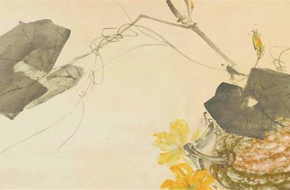 1940年创作的《南瓜图》,便是这一时期的艺术结晶。画面上,饱满的南瓜浑圆厚实,瓜叶的向背、翻转,并不依赖刻板的勾勒,而是通过水与墨、水与色的自然渗透、冲撞、交融,在宣纸上形成极其微妙的光影过渡和体积感。那藤蔓的走势,则饱含金石篆籀的笔意,遒劲有力,如龙蛇游走,于恣肆中见法度,在酣畅处显精神。这种“色墨交融而笔骨不散”的境界,正是岭南画派革新中国画的核心贡献,是东方写意精神与西方视觉经验在澳门这片沃土上孕育出的奇葩。它既有传统文人画的骨气,又洋溢着鲜活的时代气息与生命质感。