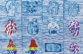 除了摄影和绘画外,还有漫画、壁画和动画影像的创作。温凌的绘画和他的摄影作品一样,都在关注日常生活的瞬间。在丙烯作品《辛德勒餐厅》中,最突出的就是背景上那些扰乱了我们视线的红色笔触。这些看似无规律的笔触,却是艺术家精心涂上去的:没有一个笔触是相同的质地,也没有一个笔触透露出无所谓和怠慢。笔触,如同手写体中的感情流露。艺术作品中的笔触比手写体的痕迹更容易理解,因为一段顿挫间持续向前的笔触与一段厚涂且迟缓向上的笔触,给你的感受肯定不同。在《辛德勒餐厅》中,我们可以看到有节奏的连续戳点式的用笔、Z字形表示连贯的运笔,以及从不同方向出锋的用笔。笔触,有时是肌肉记忆,有时是天外来客般的意外,并不完全受理智的控制。在这些笔触的背后,是艺术家的手臂动作,像极了音乐指挥。不过,艺术家指挥的是自己情感的交响。当然,“音乐”并不都是欢乐颂。