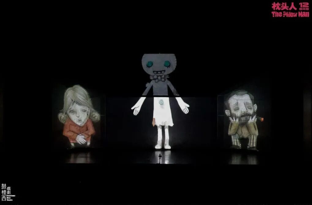 这一版的《枕头人》不仅对原剧情节进行了梳理,还把剧中的一对兄弟替换为一对姊妹,使普通观众更容易接受和理解其中的寓意。舞台影像和卡通形象相互穿插,不仅增强了戏剧叙事的层次感和形式感,还凸显了视觉上的丰富性,这得益于导演深厚的功力。