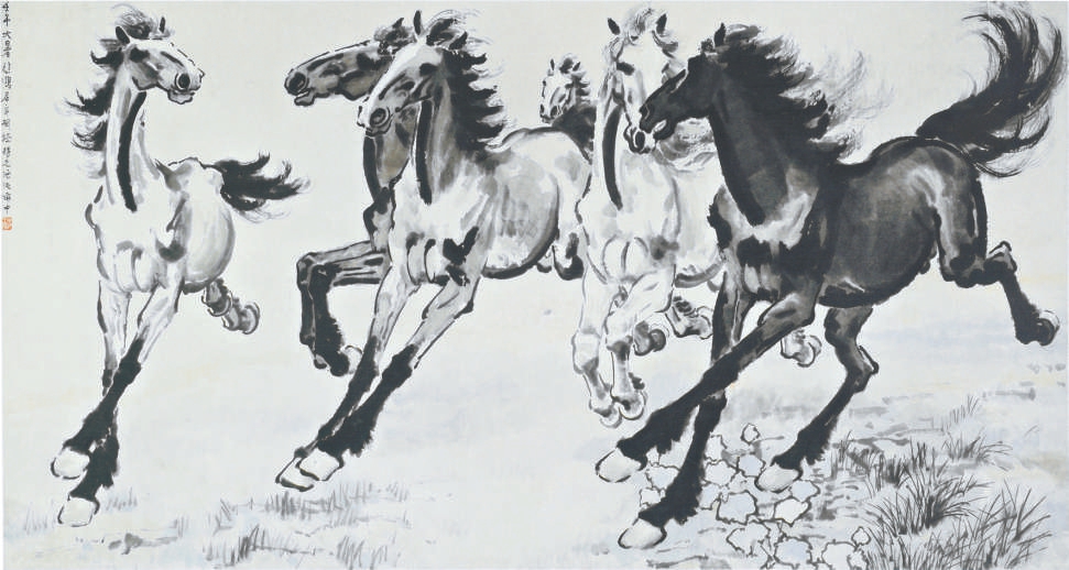 “一洗万古凡马空”,马在徐悲鸿的中国画创作中占据着不同寻常的地位。他笔下的马堪称一绝,更是中西融合现实主义创作风格的典范。那一匹匹奔放处不狂狷、精微处不琐屑,筋强骨健、形神俱足的“悲鸿马”孕育出了一个时代的艺术奇观。