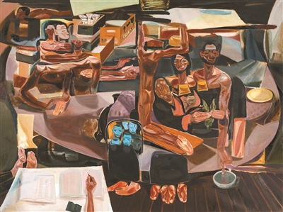 也因此,乌尔盖萨笔下的“集体”并不轻松。托举不只是合作,也意味着消耗;结构能够成立,代价是一直有人在承受重量。他没有把身体画成单纯的受害者,它们在受压,也在支撑;在被挤压,也在维持秩序。这使得他的画始终绷着,不松口。他们曾经面对的迁徙、冲突和生存压力,最后都不是飘在空中的大词,而是要回到肉身里去承担。这是他作品最沉的地方。